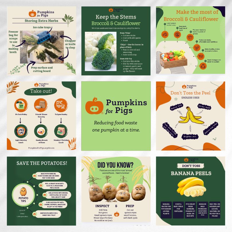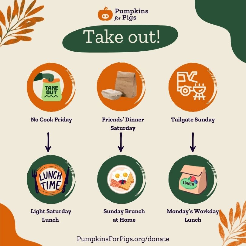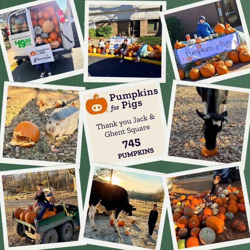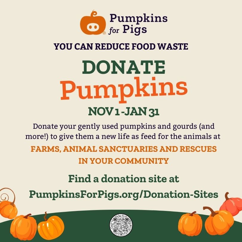 Pumpkins For Pigs (PFP)’s mission is to prevent food waste in our communities by diverting viable foodstuffs including pumpkins to farms, animal sanctuaries, and rescues for feed.